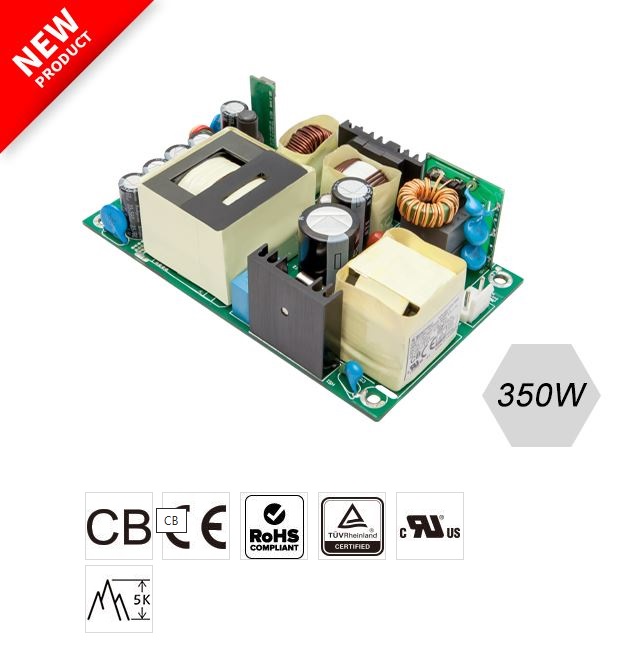The SBU350 switching power supplies are designed for ITE applications and are ideal for 1U servers, communication equipment, AV equipment, stage lights, outdoor lighting, etc