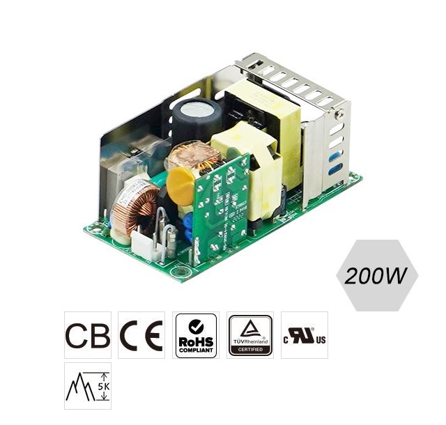 The HBU200 series is a family of open frame medical power supplies that are designed to offer 150W output power with free air convection and 200W with 10CFM forced air. The power modules are available in the voltage level of 5v, 12v, 24v, 36v, or 48v (coming with a universal input of 90-260 Vac) at efficiencies up to 92% and can operate in an operating temperature range of -10 to +70°C with a 5000M altitude operational ability.