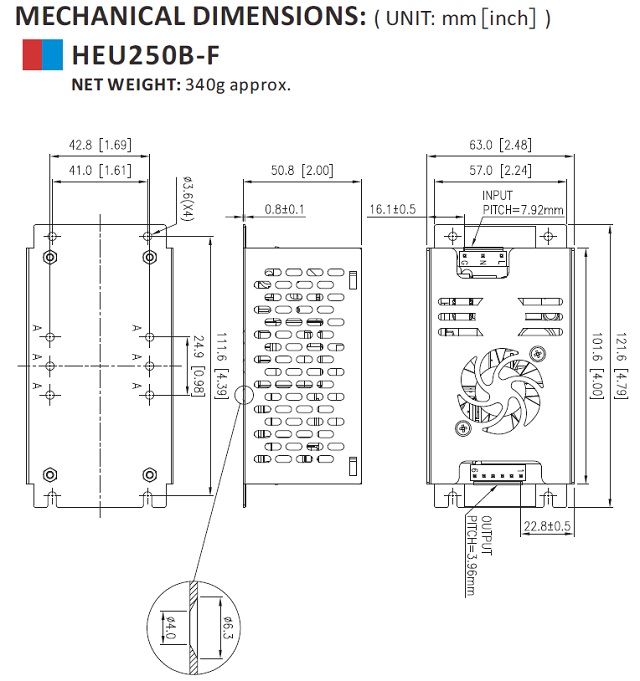 The HEU250B-F series, on the other hand, provides 25.41W/in3 high power density and an exceptional heat dissipation efficiency while still maintaining the small size of design.