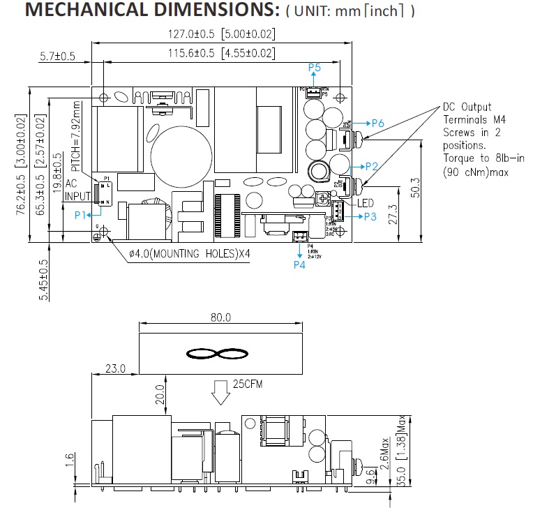 ● Hold-Up Time: 12mS (min.) (with 25 CFM forced air)